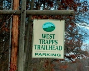 - Drive under the Bridge and continue about 2/10 mile. On the Right you will see a prominent sign "West Trapps Trailhead Parking."